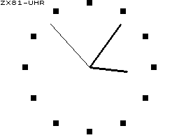 Here we have a real working analog clock uhr.p with dial and hands. It automatcly detects a ZX81 (50Hz) or TS1000 (60Hz) and adjustst the timer. To make it run with the correct speed on an emulator you have to adjust the variable FPS (FramesPerSecond) in the program to match the picture frequency!